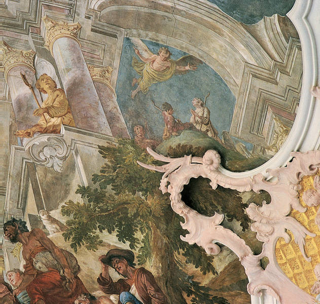 Die Stiftskirche St. Josef der Benediktiner in Fiecht zählt zu den bedeutendsten der um die Mitte des 18. Jahrhunderts entstandenen Kirchenbauten in Tirol. Auch für die Innenausstattung zeichnen bedeutende Künstler verantwortlich. Die Ausmalung des Kirchenraumes mit Szenen aus dem Leben des Kirchenpatrones, des hl. Josef, übernahm der Augsburger Rokokomaler Matthäus Günther (1705-1788), die Stuckarbeiten stammen von Wessobrunner Meistern.